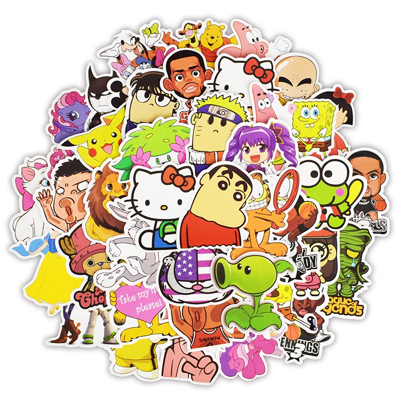 | 50pcs Cartoon Character Sticker Classic Anime Mixed Childrens Stickers for Kid DIY Laptop Luggage Bike Fridge Guitar Car Sticker |